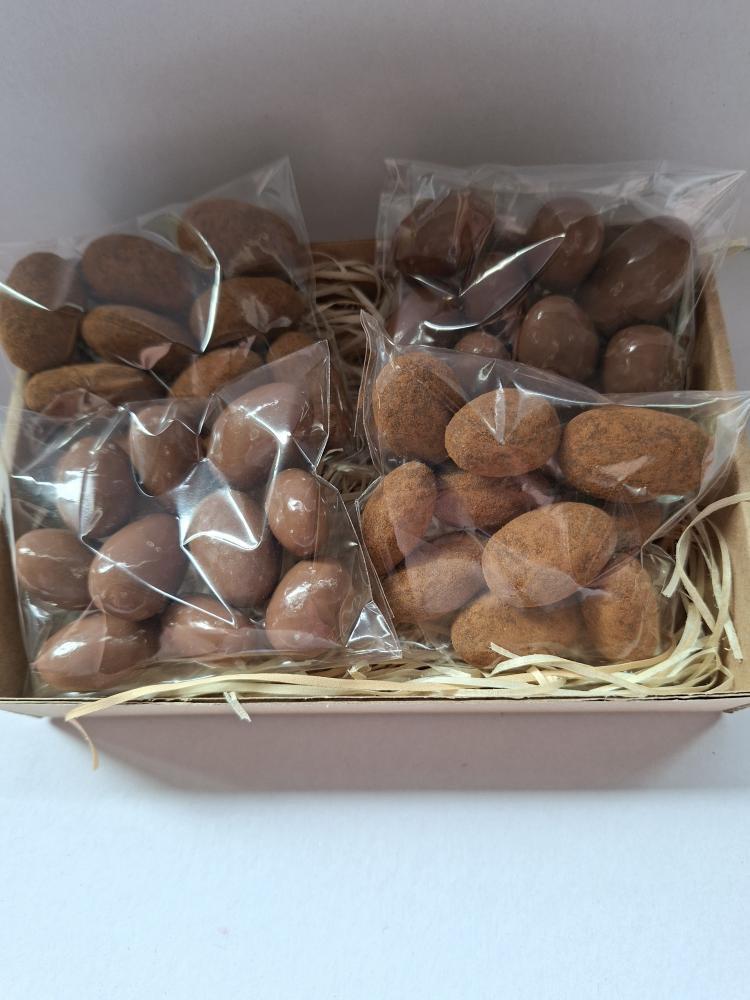 Balíček obsahuje : 4x 10ks mandlí obalených v mléčné čokoládě a ve skořici. Případně 2x ve skořici a 2x jen v mléčné čokoládě.